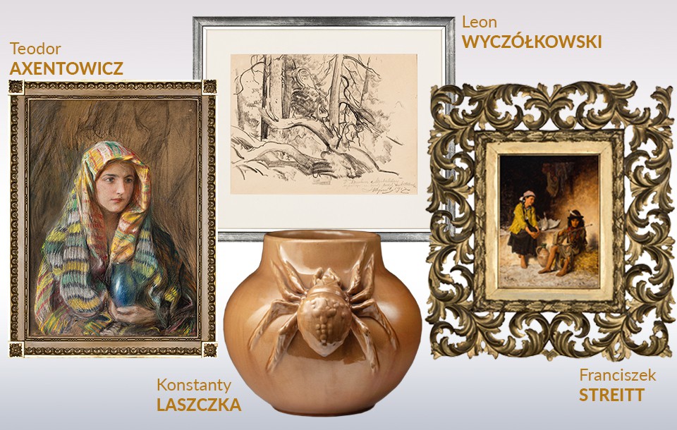 Zapraszamy do zapoznania się z sierpniowymi nowościami w naszej ofercie, wśród których m.in. prace Franciszka Streitta, Teodora Axentowicza, Leona Wyczółkowskiego, Stanisława Kamockiego i Jana Szancenbacha. Na szczególną uwagę zasługuje również unikatowy i niezwykle efektowny "Wazon z pająkami" autorstwa klasyka dawnej, krakowskiej rzeźby - Konstantego Laszczki.